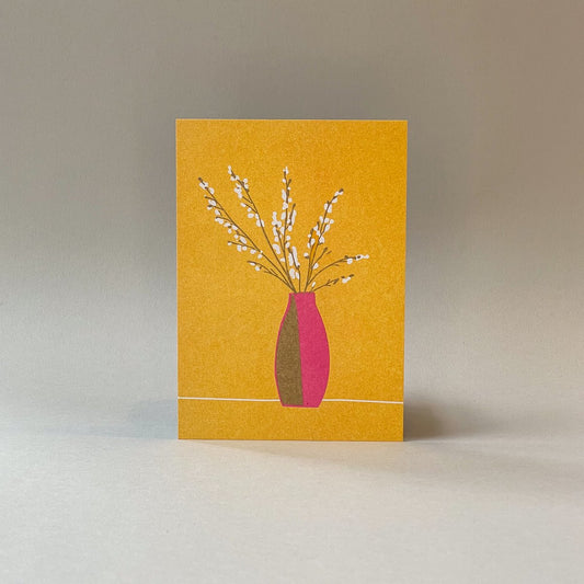 Risografie ansichtkaart - Glinsterende takken gedrukt in metallic goud.