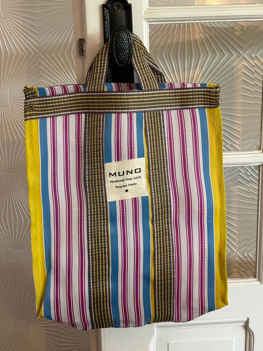 Draagtas - handgemaakt van gerecycled nylon - Geel, Blauw & Fuchsia