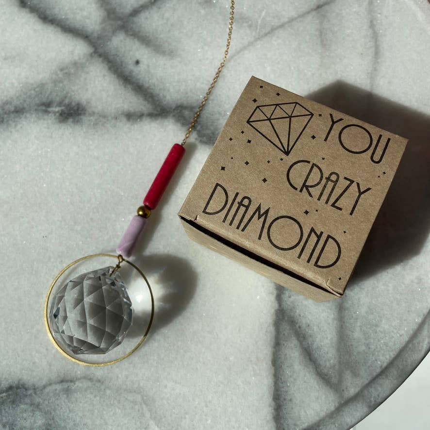 ✨ Details: Kristalglas-prisma Ø ca. 3 cm, messingketting ca. 50 cm, ophanging met haak of lus. Verpakt in zijdepapier & geschenkdoos met "You Crazy Diamond“-opdruk.