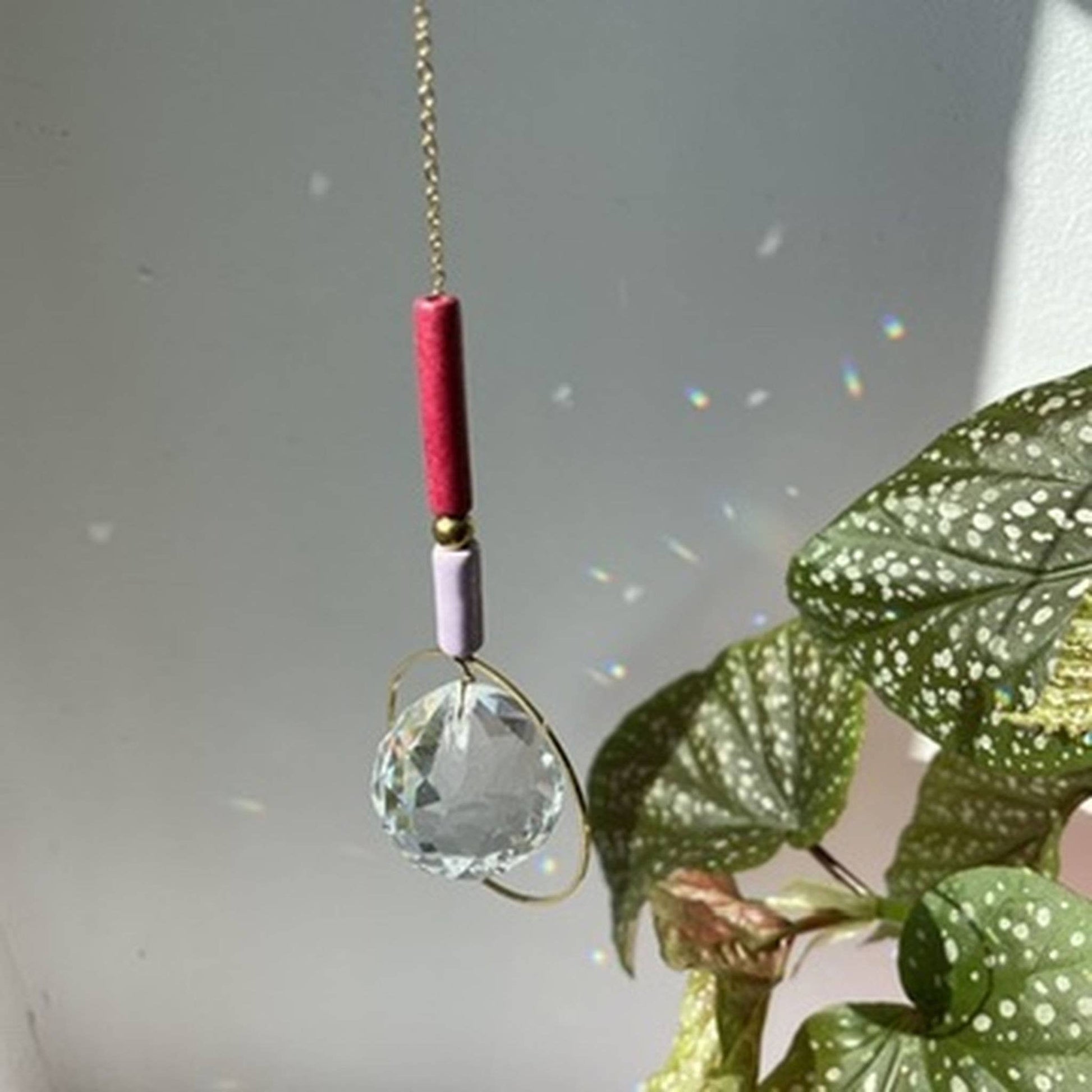 Deze variant draagt de naam Perel en combineert een echte glazen kristalkogel met mooie keramische kralen. De kleuren stralen warm en vriendelijk speels, licht en kleurverliefd.