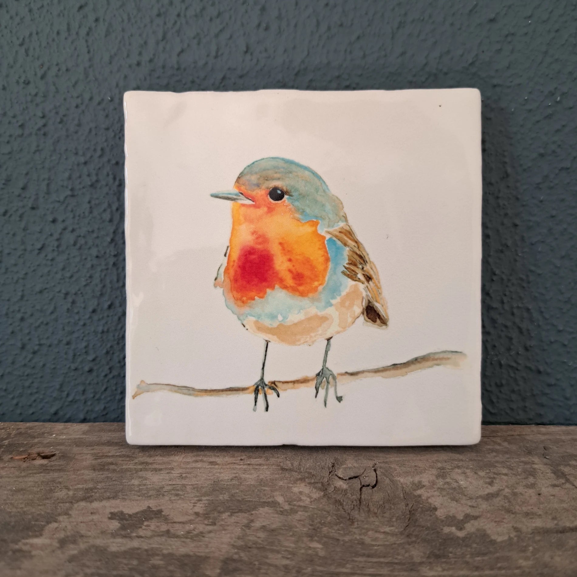 Roodborstje op mooie witte handvorm tegels van 10 bij 10 cm of 13 bij 13 cm
