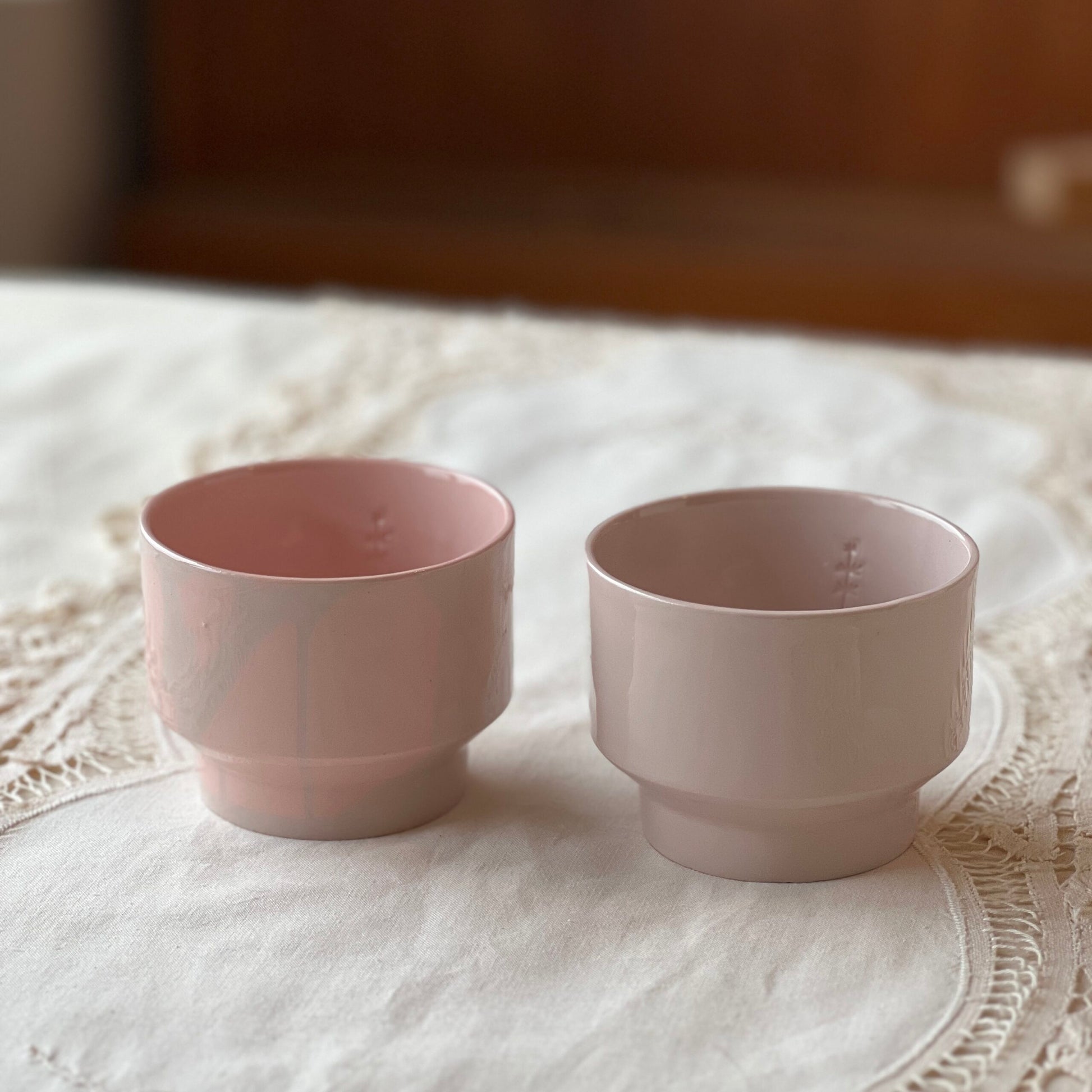 Elk kopje wordt met de hand gegoten met porseleinklei, waardoor elk exemplaar uniek is. De patronen op het kopje kunnen variëren door dit gietproces en de kleur kan ook enigszins afwijken van de foto’s.