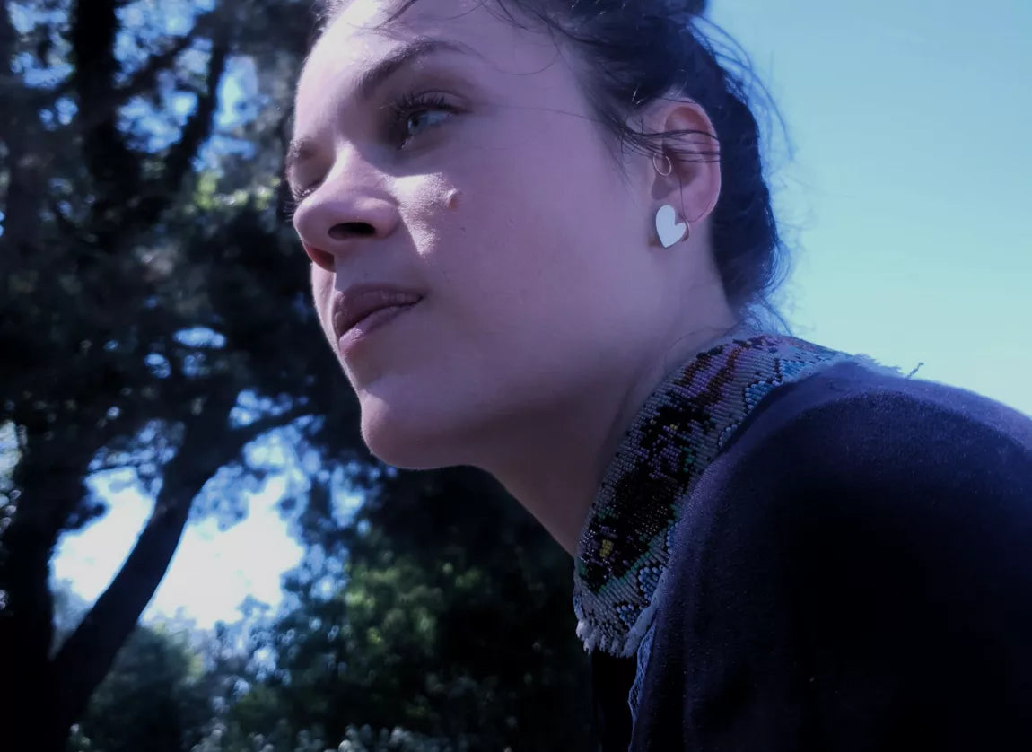 AMOR – Mini lichte gouden Formica oorbellen – hartvormig ontwerp – handgemaakt in Frankrijk