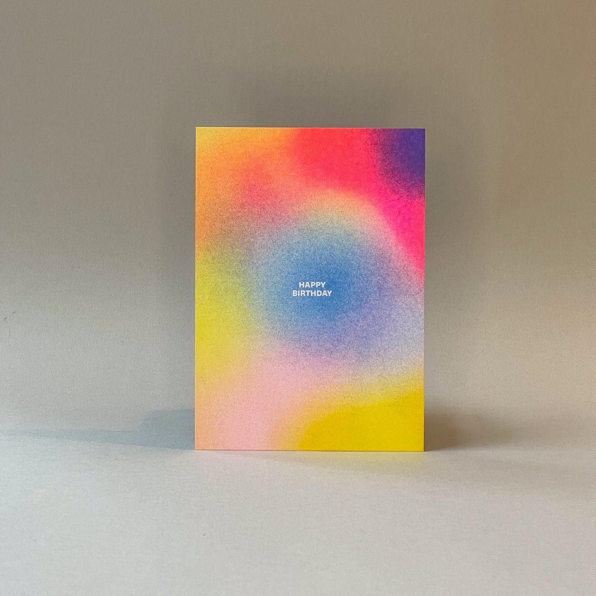 Verjaardagskaart in een vrolijk kleurverloopontwerp.