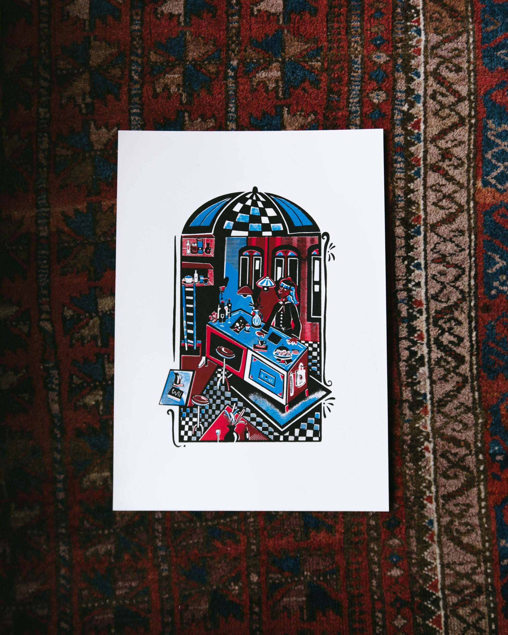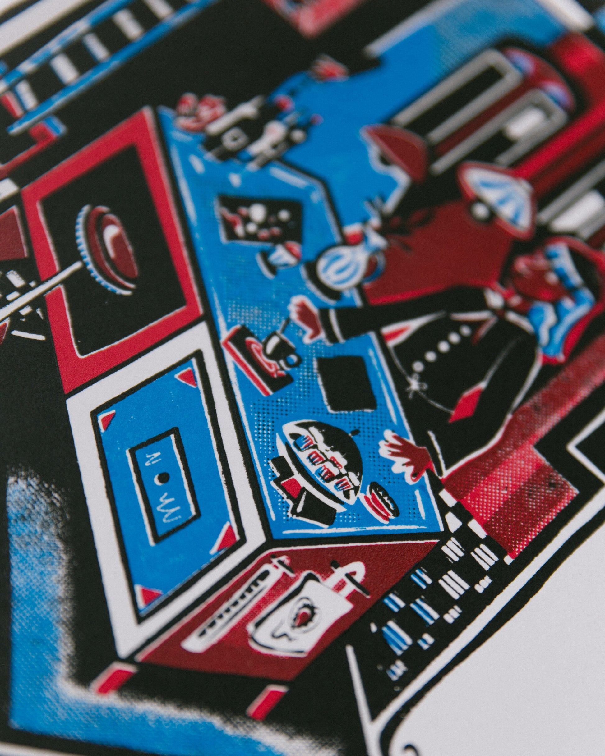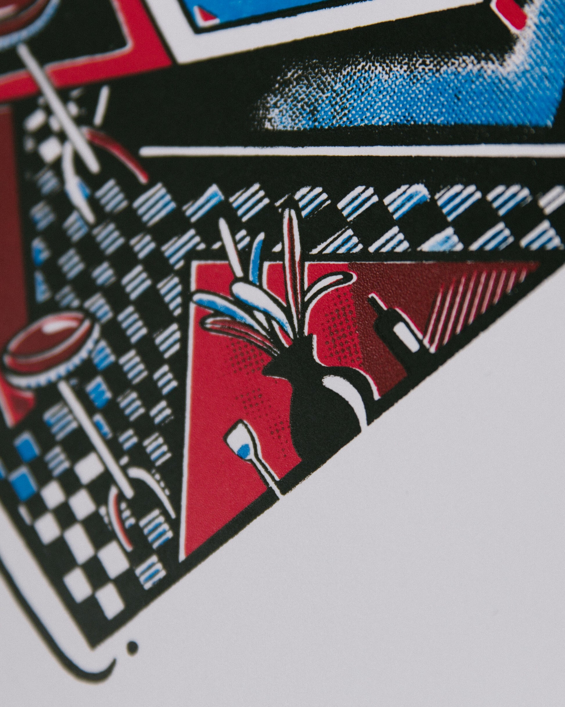 Zeefdruk in 4 kleuren, limited edition van 30 stuks.