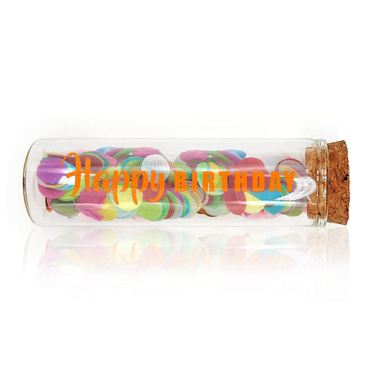 Geldgeschenk buisje - Happy Birthday - neon oranje met kleurrijke confetti